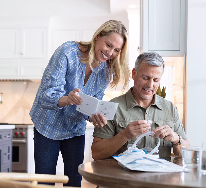 Sie lernen die Mitarbeitenden der Resmed Healthcare bereits in der Klinik kennen. Beim Besuch wird Ihnen das Beatmungstherapiegerät mit seinen Besonderheiten erklärt sowie eine geeignete Maske ausgesucht und angepasst. Wir erklären Ihnen auch, wie genau es weitergeht, wenn Sie zu Hause sind.