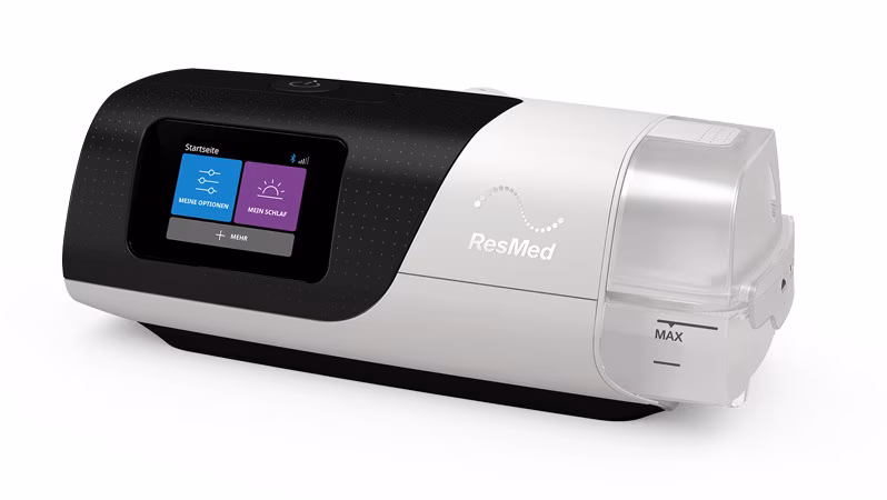 Die gängigste Behandlung der Schlafapnoe ist die CPAP-Therapie, bei der beim Schlafen eine Atemmaske getragen wird. Die Maske ist über einen Schlauch mit einem kleinen Therapiegerät verbunden, das mit leichtem Überdruck kontinuierlich Raumluft in die Atemwege pumpt. Ihr:e Ärzt:in findet die für Sie passende Therapie (bestehend aus Schlafapnoetherapiegerät und Maske) und wir organisieren die Versorgung. Neben Resmed-Geräten greifen wir auch auf andere Hersteller zurück. Erfahren Sie mehr über die wichtigsten Bestandteile Ihrer CPAP-Therapie.